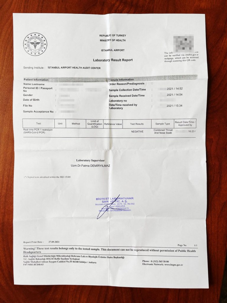 ・結果をメールで送ってくれるのであれば、飛行中やイスタンブールについてから結果を受け取る形でいいかなと思っていたが、検査結果はアンタルヤ空港のその場所でしか受け取れない(紙)