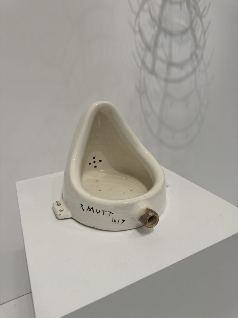 これは、彼が1917年に制作した、排尿を模したとされる陶器の便器を逆さまにしたもので、そのままサイン(「R.Mutt」という偽名)を施したもの。